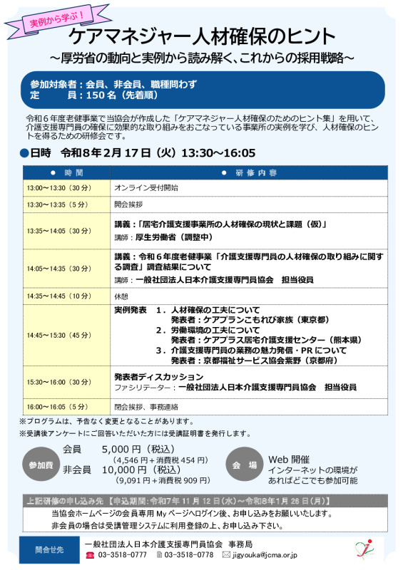 研修会『ケアマネジャー人材確保のヒント』の開催について🍁NEW🍁